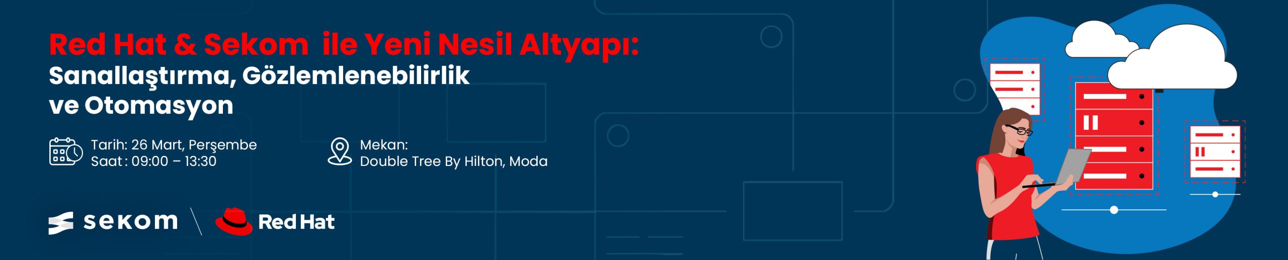 Sekom ve Red Hat iş birliğiyle gerçekleştireceğimiz oturumda, OpenShift üzerinde VM yönetiminden migration senaryolarına, deklaratif felaket kurtarma yaklaşımlarından hosted control plane mimarisine, merkezi gözlemlenebilirlik ve GitOps pratiklerine kadar pek çok başlığı canlı demolar eşliğinde paylaşacağız.
